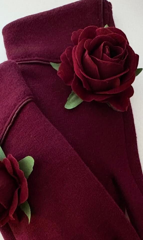 Combining deep red elegance with subtle floral artistry, offering a timeless accessory for couture-inspired style