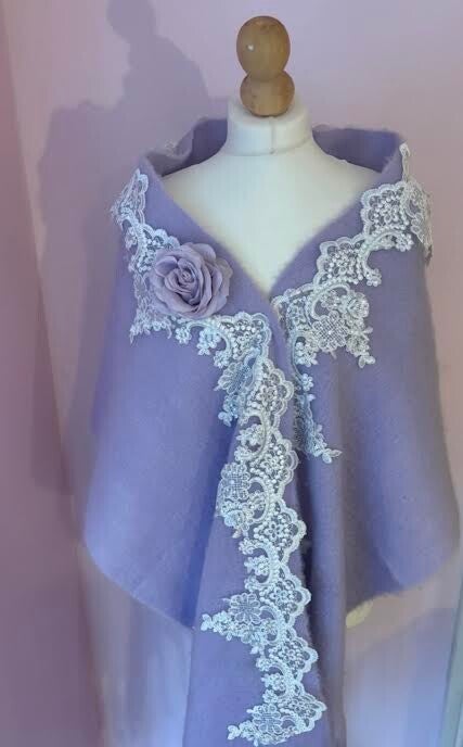 Drift into delicate elegance with this dreamy lilac scarf, beautifully finished with matching lilac lace and a handcrafted lilac rose. Soft, feminine, and effortlessly graceful, it adds a touch of romantic charm to any outfit—perfect for spring days, special occasions, or gifting someone who adores gentle pastels